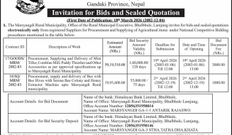 Invitation For Sealed Quotation (03/MRM/SQ/2081-82 : Procurement and Supplying of Medical & Surgical Items up to Marsyangdi Rural Municipality)