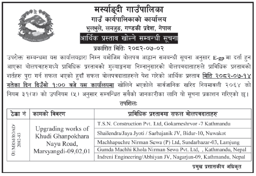 » आर्थिक प्रस्ताव खोल्ने सम्बन्धी सूचना ।।।