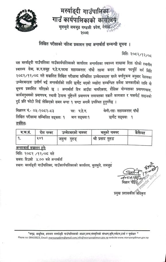 लिखित परिक्षाको नतिजा प्रकाशन तथा अन्तर्वार्ता सम्बन्धी सूचना ।।।