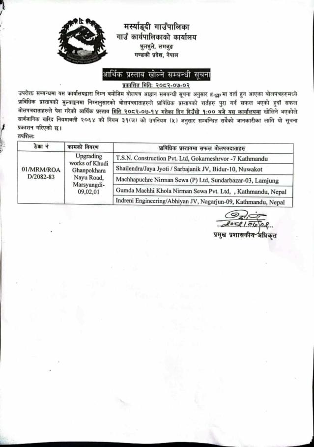 » आर्थिक प्रस्ताव खोल्ने सम्बन्धी सूचना ।।।